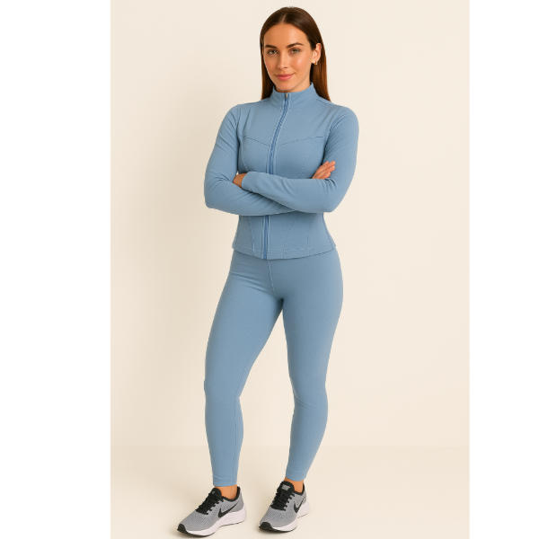La campera cuenta con un diseño moderno que se adapta a la figura femenina, mientras que la calza tiro alto proporciona un ajuste ceñido que realza la silueta. Ambos elementos están diseñados para ofrecer un soporte óptimo, ideal para actividades deportivas o para un look casual en el día a día.